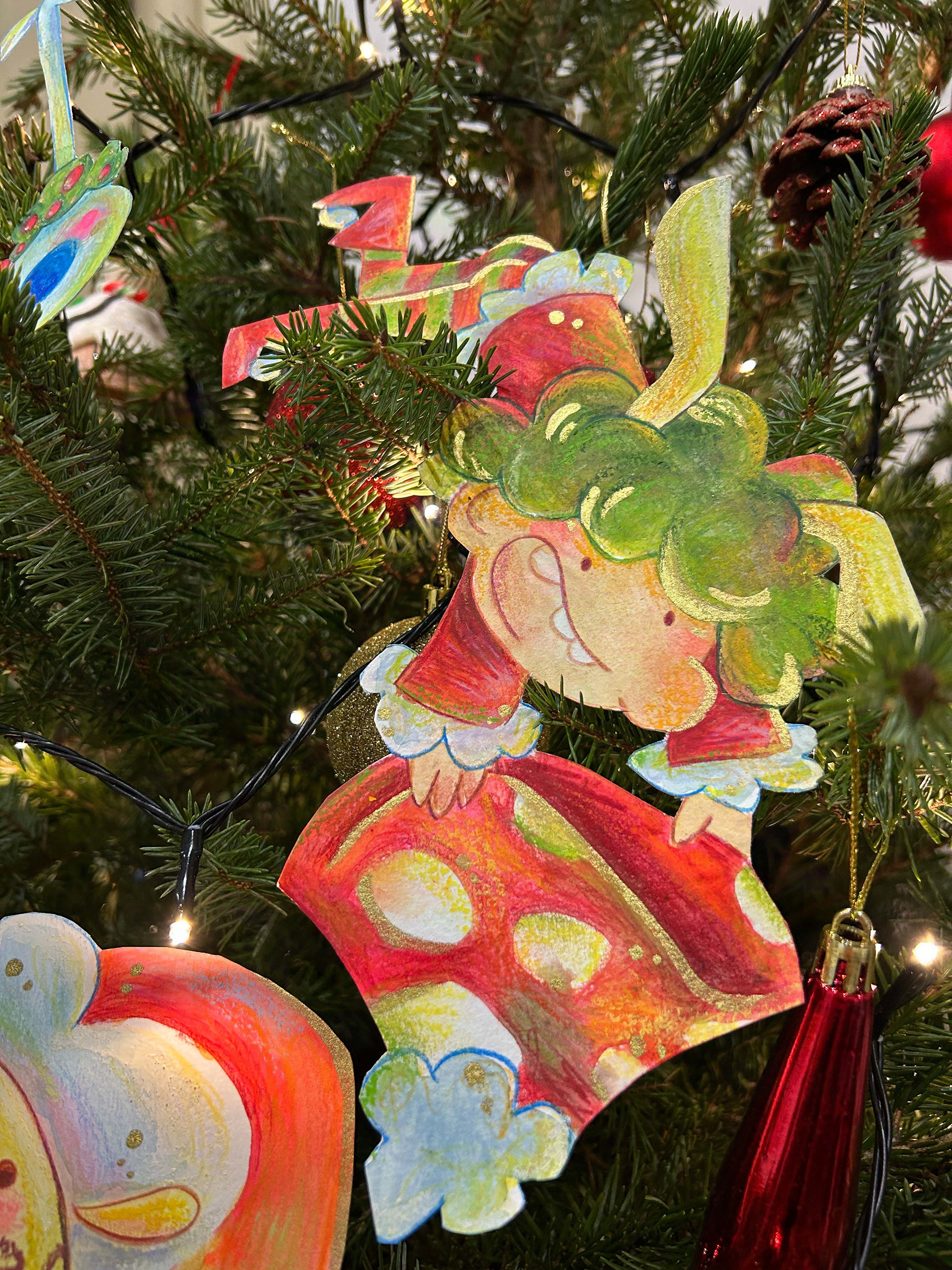 My characters as Christmasa tree decorations